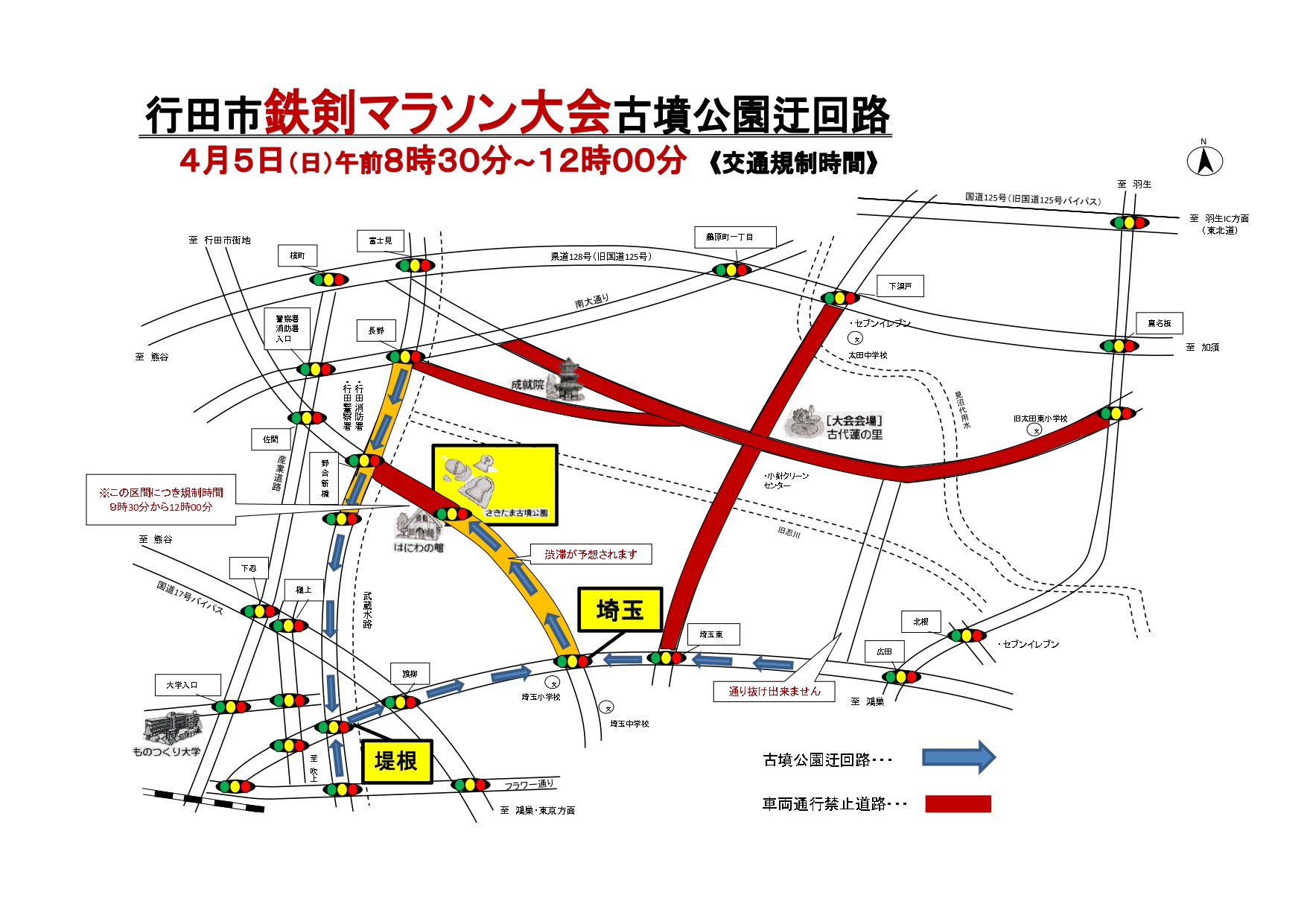 交通規制時間中にさきたま古墳公園にお越しの方は、こちらの迂回路をご利用ください。