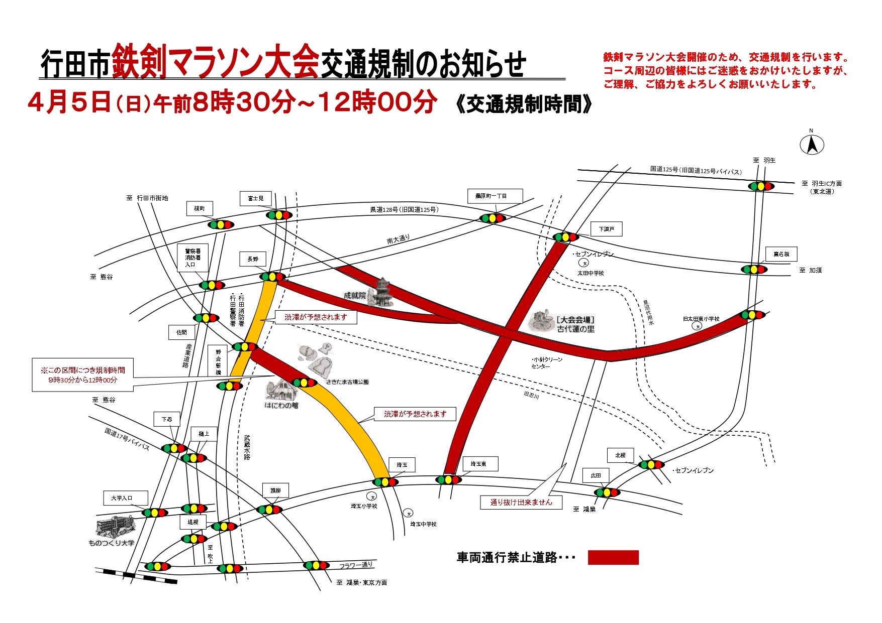 大会当日はコース周辺の道路で交通規制が行われます。ご協力をお願いいたします。